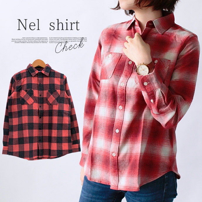 コロナ 支援 応援 値下げ【メール便なら送料無料】レディース ネルシャツ シャツ メンズライク 長袖 チェック ネル コットン 綿 オンブレチェック バッファローチェック ブラック レッド [45][LT][A][C][D]【SHOT ショット】[190829]